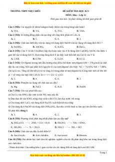 + Đề thi học kì 1 Hóa học năm 2023 trường THPT Trần Hưng Đạo - Hà Nội;