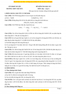 TRƯỜNG THPT VIỆT ĐỨC MÔN: Hóa – Lớp 11