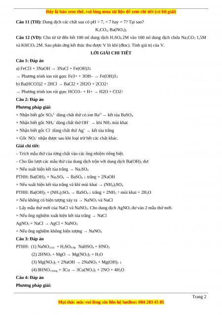 Câu 2: Đáp án Phương pháp giải: + Nhận biết gốc SO 2–