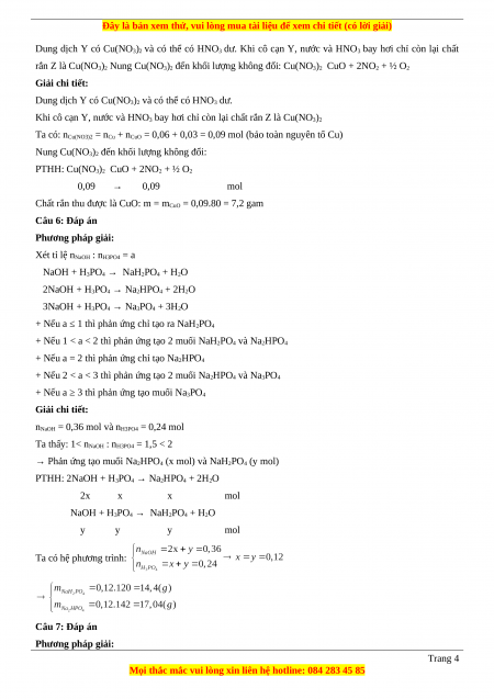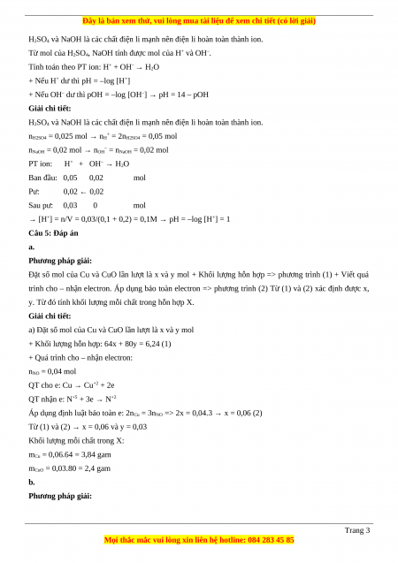 Khối lượng mỗi chất trong X: mCu = 0,06.64 = 3,84 gam mCuO = 0,03.80 = 2,4 gam b. Phương pháp giải: Trang 3