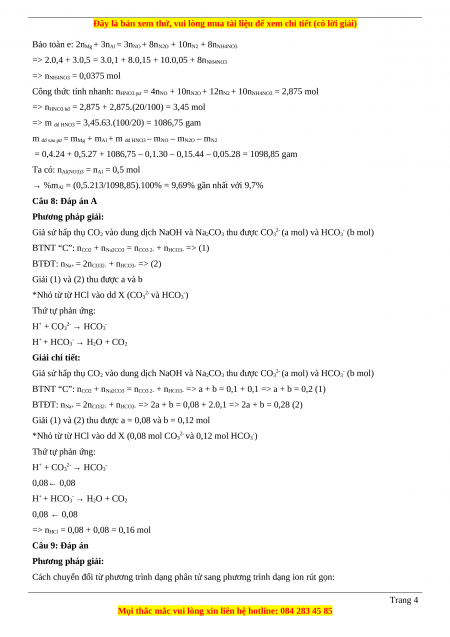 Câu 8: Đáp án A Phương pháp giải: Giả sử hấp thụ CO 2- -
