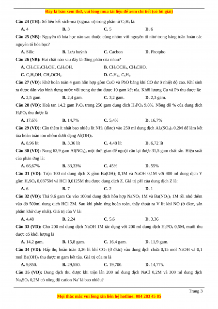 TÀI LIỆU BỘ BÁN CHẠY MÔN Hóa Học