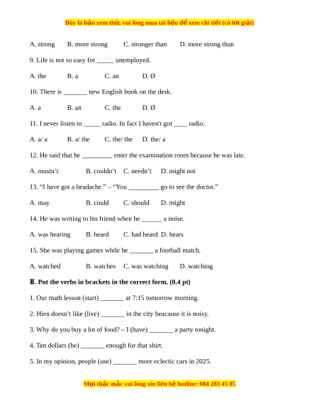 Đây là bản xem th , vu ử i lòng mua tài li u ệ đ xe ể m chi ti t (c ế ó l i ờ gi i ả ) A. strong B. more strong C. stronger than D. more strong than