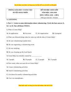 I. Part 1: Listen to some information about volunteering. Circle the best answer A,