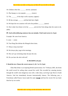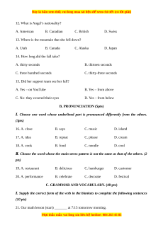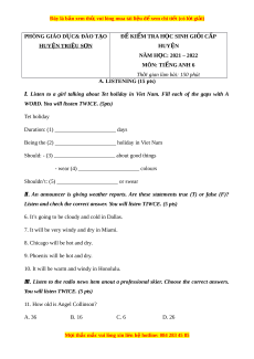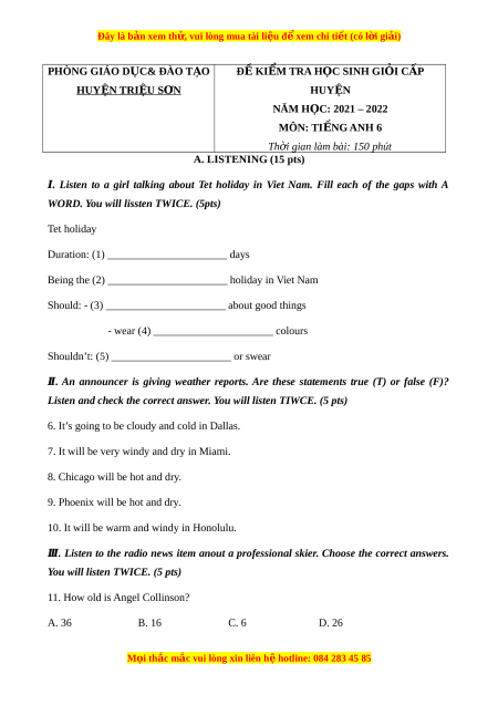 Đây là bản xem th , vu ử i lòng mua tài li u ệ đ xe ể m chi ti t ế (có l i ờ gi i ả ) PHÒNG GIÁO D C& Ụ ĐÀO T O Ạ Đ Ề KI M Ể TRA H C Ọ SINH GI I Ỏ C P Ấ HUY N Ệ TRI U Ệ S N Ơ HUY N Ệ NĂM H C: Ọ 2021 – 2022 MÔN: TI NG Ế ANH 6 Th i