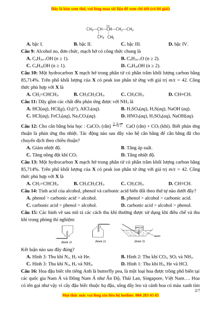 Câu 7: Cho các dẫn xuất halogen mạch không nhánh sau: (1) CH3Cl; (2) C2H5Cl; (3)