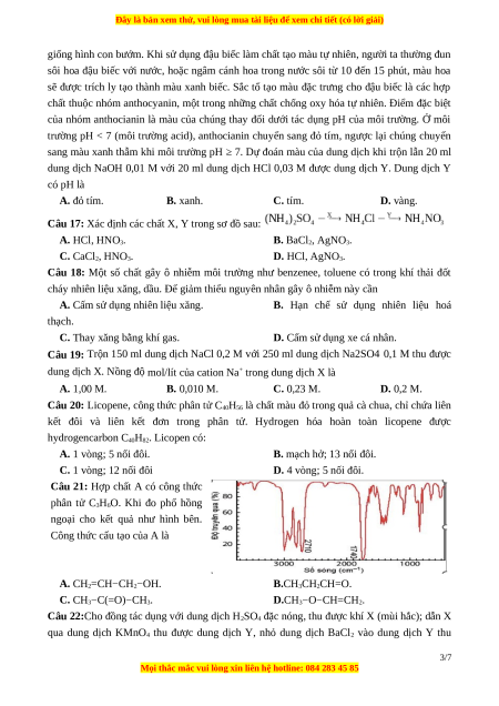 Câu 18: Một số chất gây ô nhiễm môi trường như benzenee, toluene có trong khí thải đốt