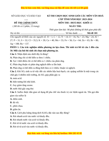 - Tailieugiaovien.com.vn giới thiệu Bộ 20 đề thi Học sinh giỏi Hóa 11 năm 2023 - 2024 chương trình sách mới và tặng kèm 12 đề HSG Hóa 11 năm 2022-2023 nhằm giúp Giáo viên có thêm tài liệu tham khảo Hóa học 11.