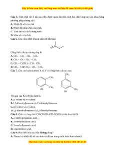 Câu 7. Cho các hydrocarbon X và Y có công thức cấu tạo sau: CH3 CH3 CH3 (X) CH3 (Y)
