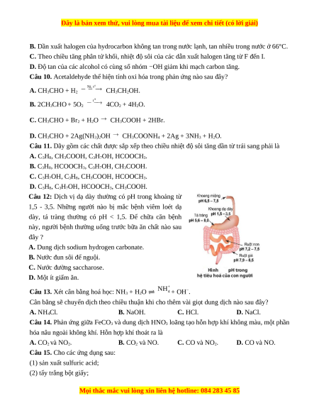 Câu 12: Dịch vị dạ dày thường có pH trong khoảng từ