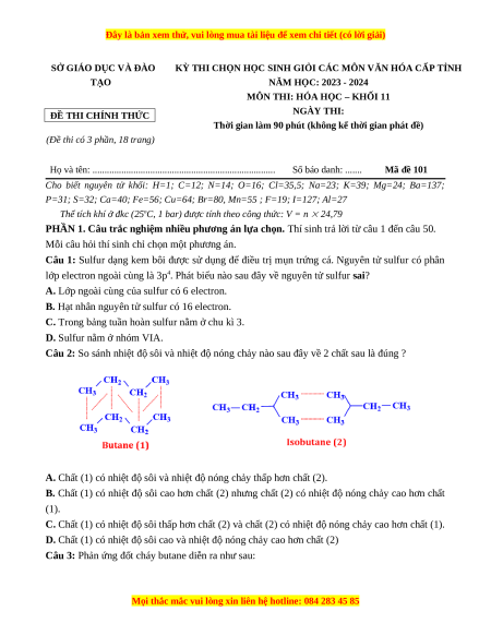 Câu 1: Sulfur dạng kem bôi được sử dụng để điều trị mụn trứng cá. Nguyên tử sulfur có phân