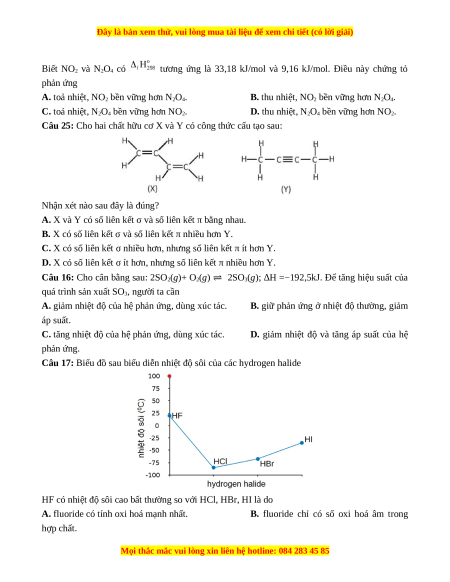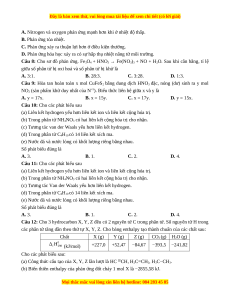 Câu 15: Cho phản ứng hoá học xảy ra ở điều kiện chuẩn sau: 2NO2(g) (đỏ nâu) N2O4(g) (không màu)