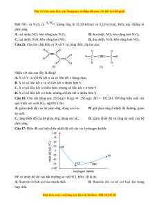 Câu 12: Cho 3 hydrocarbon X, Y, Z đều có 2 nguyên tử C trong phân tử. Số nguyên tử H trong