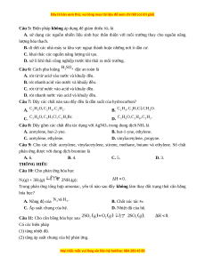 Câu 9: Cho các chất: acetylene, vinylacetylene, stirene, methane, butane và ethylene. Số chất