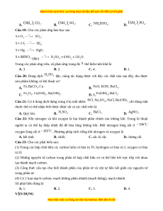 Câu 19: Cho các phản ứng hóa học sau (đặc)