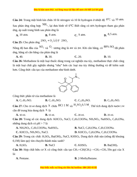 Câu 18: X là muối khi tác dụng với dung dịch NaOH dư sinh khí mùi khai, tác dụng với dung dịch