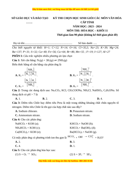 - Tailieugiaovien.com.vn giới thiệu Bộ 20 đề thi Học sinh giỏi Hóa 11 năm 2023 - 2024 chương trình sách mới và tặng kèm 12 đề HSG Hóa 11 năm 2022-2023 nhằm giúp Giáo viên có thêm tài liệu tham khảo Hóa học 11.