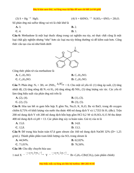 Câu 9: Để trung hòa hoàn toàn 67,6 gam oleum cần 160 ml dung dịch NaOH 32% (D= 1,25