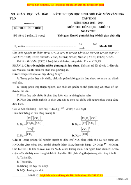 Mã đề 101 Mọi thắc mắc vui lòng xin liên hệ hotline: 084 283 45 85 Trang 1/21
