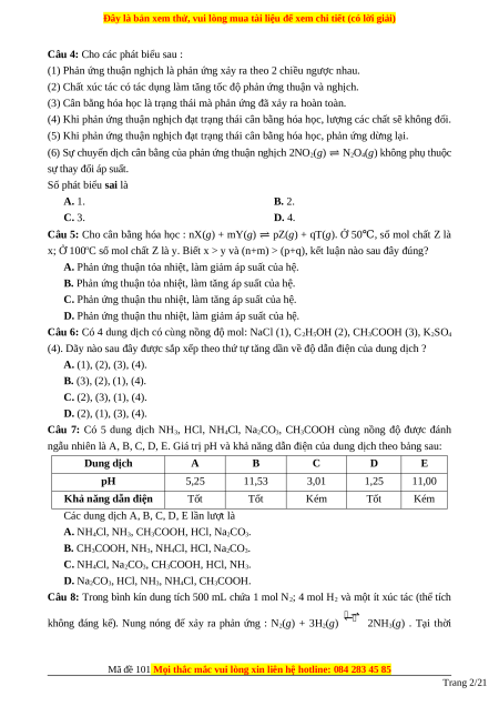 Mã đề 101 Mọi thắc mắc vui lòng xin liên hệ hotline: 084 283 45 85 Trang 2/21