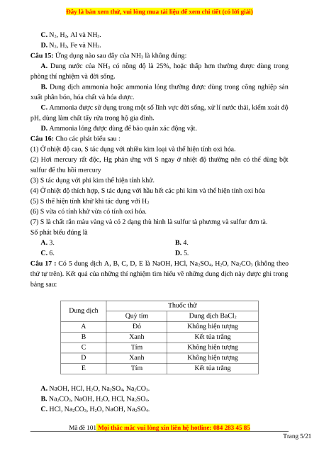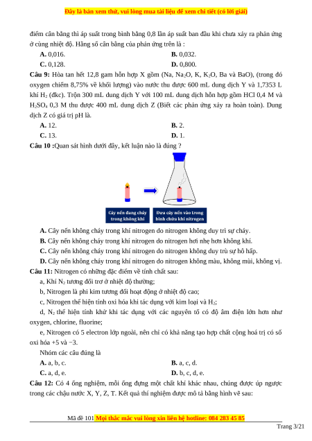 Mã đề 101 Mọi thắc mắc vui lòng xin liên hệ hotline: 084 283 45 85 Trang 3/21