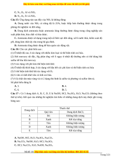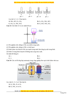 Câu 12: Có 4 ống nghiệm, mỗi ống đựng một chất khí khác nhau, chúng được úp ngược