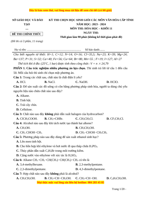 - Tailieugiaovien.com.vn giới thiệu Bộ 20 đề thi Học sinh giỏi Hóa 11 năm 2023 - 2024 chương trình sách mới và tặng kèm 12 đề HSG Hóa 11 năm 2022-2023 nhằm giúp Giáo viên có thêm tài liệu tham khảo Hóa học 11.
