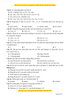 Câu 4: Alcohol nào sau đây khi tách nước tạo thành hai alkene? A. CH3OH. B. CH3CH2OH. C. CH3−CHOH−CH3. D. CH3−CHOH−CH2CH3.