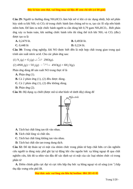 Câu 25: Ngâm củ nghệ với ethanol nóng, sau đó lọc bỏ bã, lấy dung dịch đem cô để làm