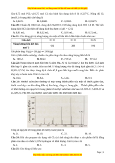 Câu 23: Methyl salicylate thường có mặt trong thành phần của một số thuốc giảm đau,