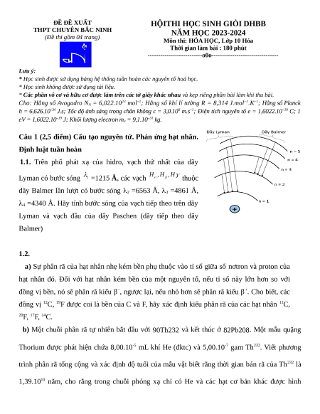 Câu 1 (2,5 điểm) Cấu tạo nguyên tử. Phản ứng hạt nhân.