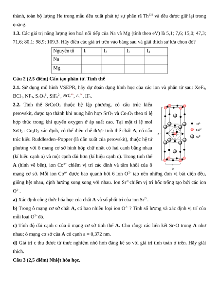2.2. Tinh thể SrCoO3 thuộc hệ lập phương, có cấu trúc kiểu