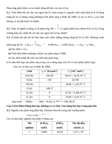 3.3. Ở nhiệt độ nào đó thì hỗn hợp cuối chứa những lượng đáng kể H và OH. Phương trình
