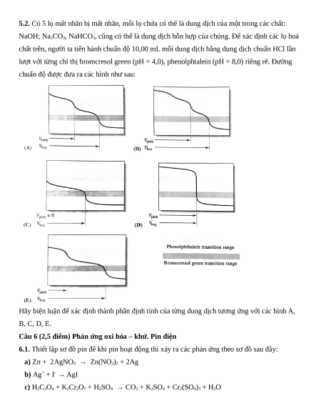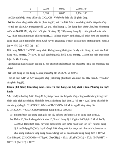 Câu 5 (3,0 điểm) Cân bằng acid – base và cân bằng các hợp chất ít tan. Phương án thực hành