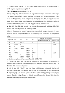 phần của một vài trong số đó được liệt kê trong bảng dưới đây và một số thông tin để trống: Nguyên tử trung tâm Hợp chất %Cl %S %F %P Số đôi electron tự do Kiểu lai hóa I 0 62,75 0 sp3 II 85,13 0 sp3d III 0 21,92 IV 21,85 19,69 58,46 9 V 0 54,29 0 2 VI 60,68 21,66 17,66 0 sp3d VII 0 61,62 0 VIII 29,63 70,37 0