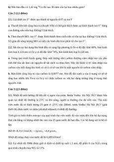 tăng bao nhiêu khi Fe-α và Fe-γ có chứa carbon so với hai dạng tương ứng ở trạng thái nguyên chất. Câu 3 (2,5 điểm):