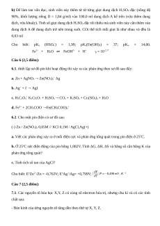 Cho biết: EoZn2+/Zn = -0,763V; EoAg+/Ag= +0,799V; ( dE )P=−0,490mV .K -1 dT Câu 7 (2,5 điểm):