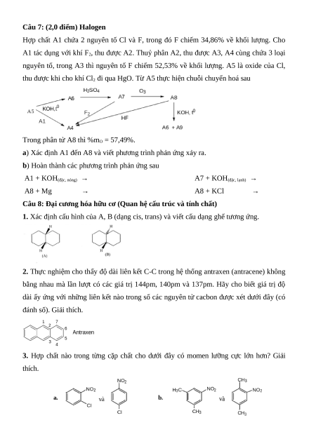 1. Cho phân tử nào sau: NH3, SiHCl3, SF2, O3, BF3, SiF4. Những phân tử nào có momen