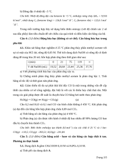 Câu 4: (3,0 điểm) Động hóa học (không có cơ chế). Cân bằng hóa học trong pha khí