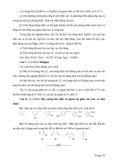 Câu 6: (2,5 điểm) Phản ứng oxi hóa – khử. Pin điện (không liên quan phức chất)