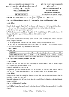 Câu 4. ( 3 điểm) Động hóa học, cân bằng pha khí 4.1. (1,5 điểm)