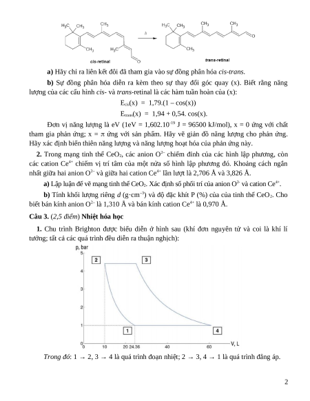 Câu 2. (2,5 điểm) Cấu tạo phân tử. Tinh thể