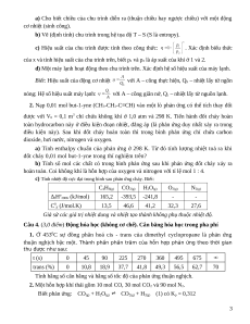 Câu 4. (3,0 điểm) Động hóa học (không cơ chế). Cân bằng hóa học trong pha phí