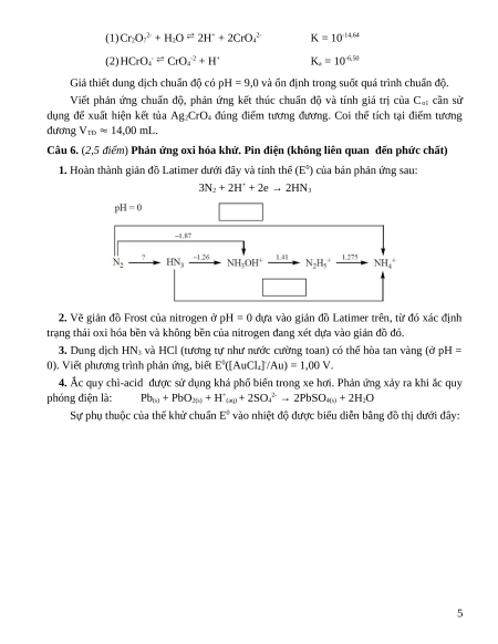 Câu 5. (3,0 điểm) Cân bằng acid-base và cân bằng hợp chất ít tan. Phương án thực hành