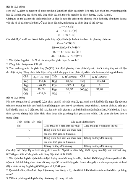 3. Khi X phân hủy hoàn toàn ở pha khí ở nhiệt độ không đổi thì áp suất tăng 2,5 lần. Viết phương trình phản ứng.