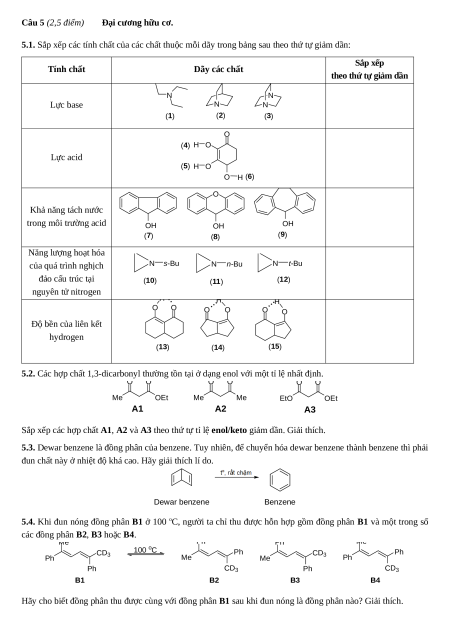 5.3. Dewar benzene là đồng phân của benzene. Tuy nhiên, để chuyển hóa dewar benzene thành benzene thì phải