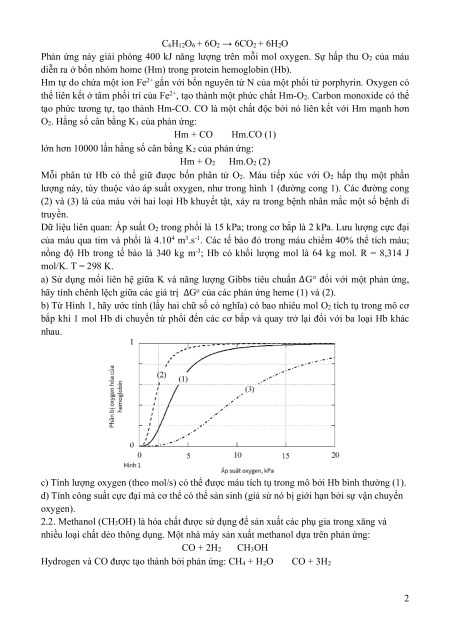O2. Hằng số cân bằng K1 của phản ứng: Hm + CO Hm.CO (1)