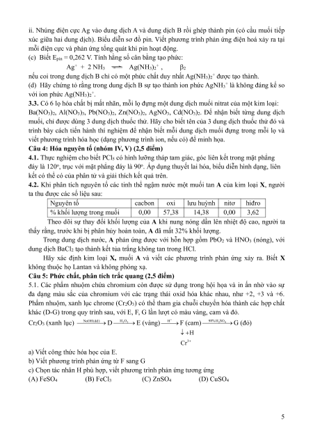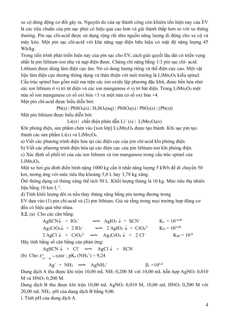 3.2. (a) Cho các cân bằng: AgSCN + IO 3 AgIO3 + SCN KI = 10-4,49 Ag 2CrO4 + 2 IO3 2 AgIO3 + CrO42 KII = 103,04 2 AgCl + CrO42 Ag2CrO4 + 2 Cl KIII = 10-8