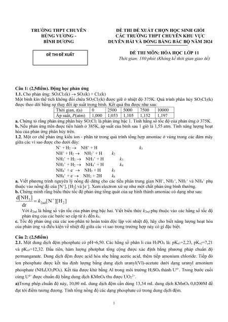 1.1. Cho phản ứng: SO2Cl2(k) SO2(k) + Cl2(k)