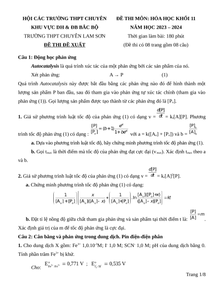 Tính phần trăm Fe3+ bị khử. Cho: Trang 1/8